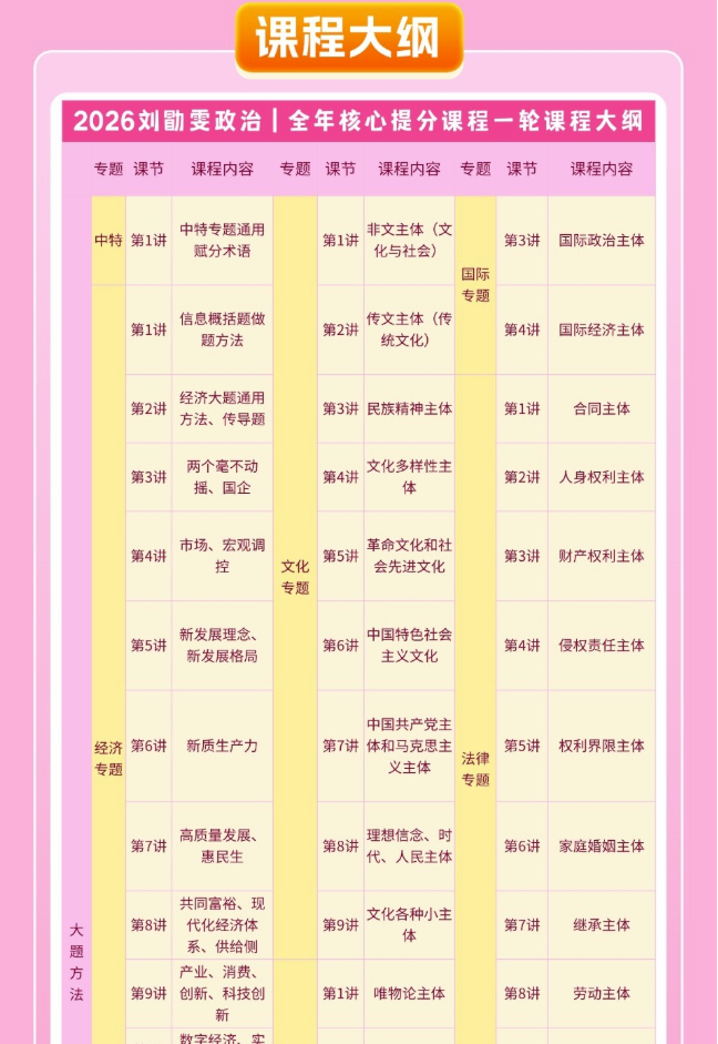 刘勖雯2026学年高三政治上学期暑秋联报,暑假班更新完毕,秋季班同步更新中刘勖雯老师
