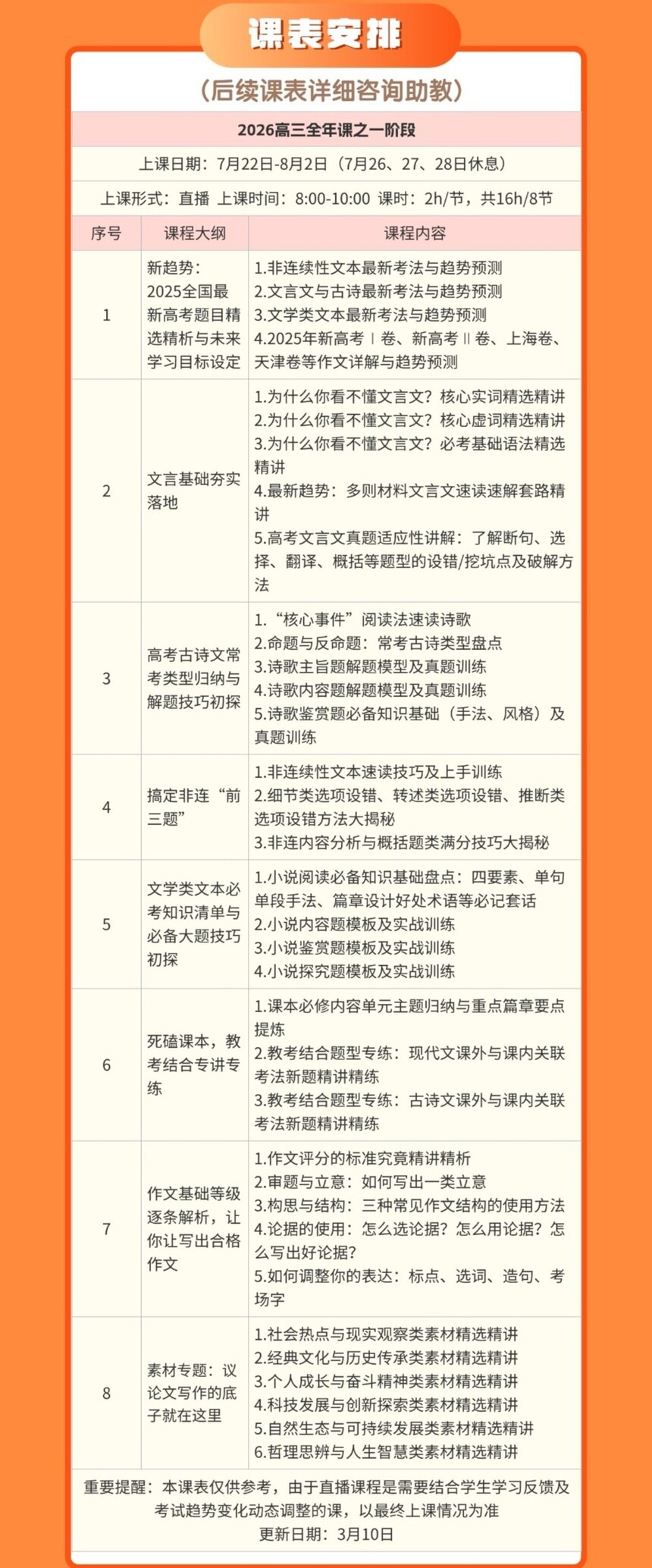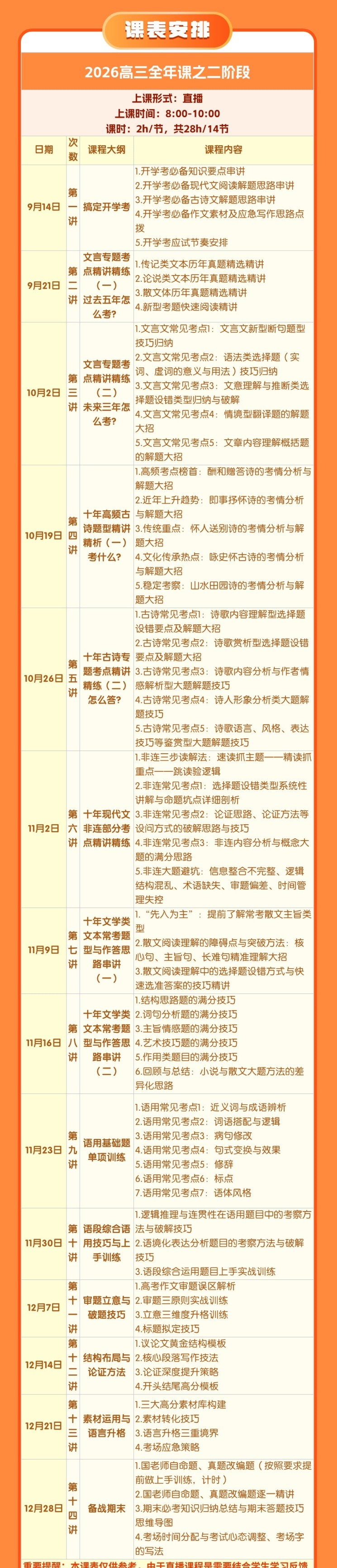 开明致学国家玮2026学年高三语文上学期暑秋联报,暑假班更新完毕,秋季班同步更新中 各阶段介绍 第一阶段:16课时,8次课 国家玮2026届高考语文一轮复习暑假班更新完毕 秋季班开始更新 (二阶秋季班同步更新中)