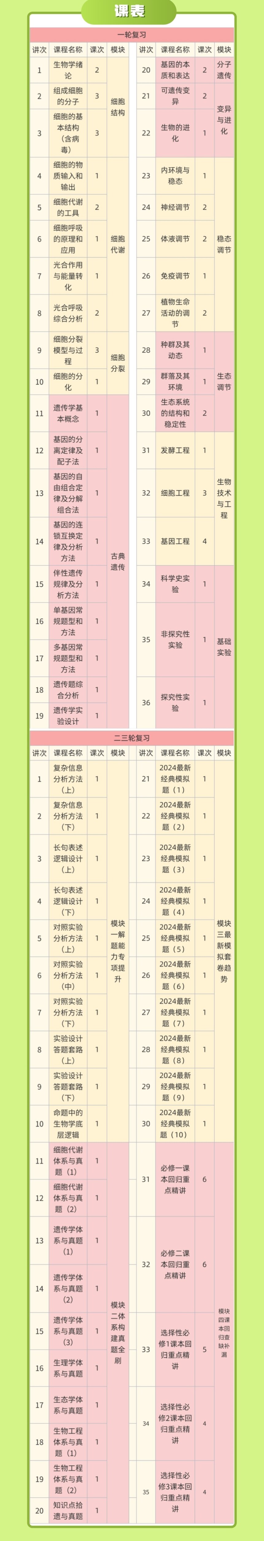 开明致学李林2026学年高三生物上学期暑秋联报,暑假班更新完毕,秋季班同步更新中李林老师 原顶尖公立高中一线生物教师原头部在线教育公司生物学科带头人 教龄15年,学员超100万 “原创高中生物教辅全系列畅销百万册·完整搭建零基础到高考生物满分的教学体系 选择性必修1/2+选择性必修3+零轮复习 一轮复习+二三轮复习 课程亮点 一轮筑基 知识题型全面覆盖,原理方法稳拓半壁江山 二轮攻坚 体系真题深度串联,分类精练突破90+璧垒 三轮冲刺 模拟实战查缺补漏,贯通体系稳赢高考节奏 全年进阶 科学规划闭环赋能,高考生物高分水到渠成! 课程大纲 【26年二三轮复习】